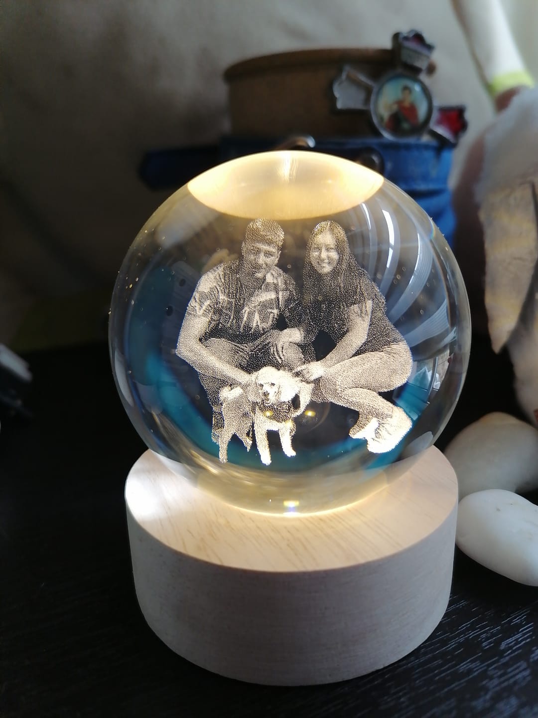 Quería un regalo único para mi novio y esta esfera fue la mejor elección. El cristal es súper transparente y el grabado resalta cada detalle con muchísima precisión. Cuando lo vio, quedó encantado. Sin duda, un regalo hermoso y de gran calidad.